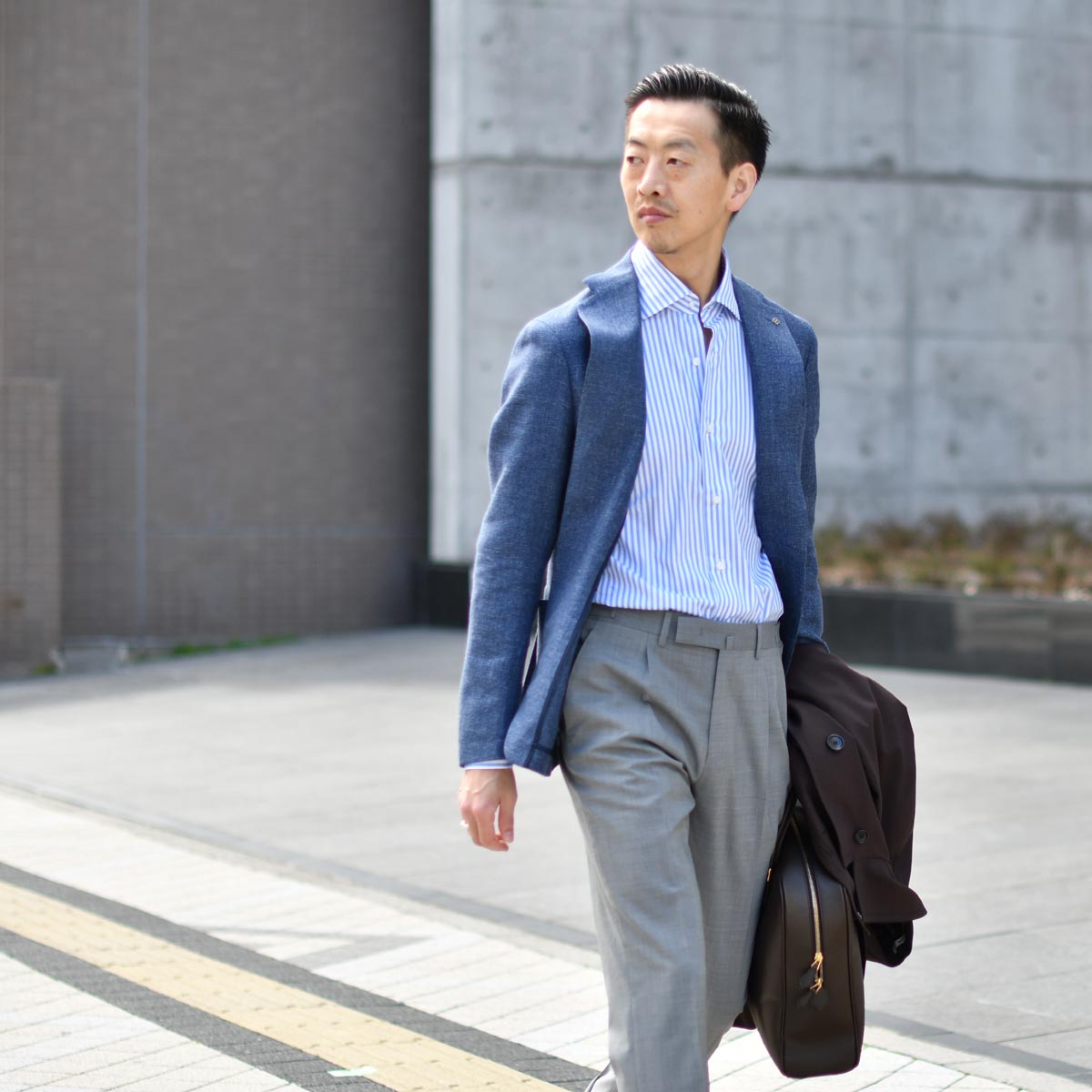 ジャケットはアッズーロ・エ・マローネに季節感を出して…