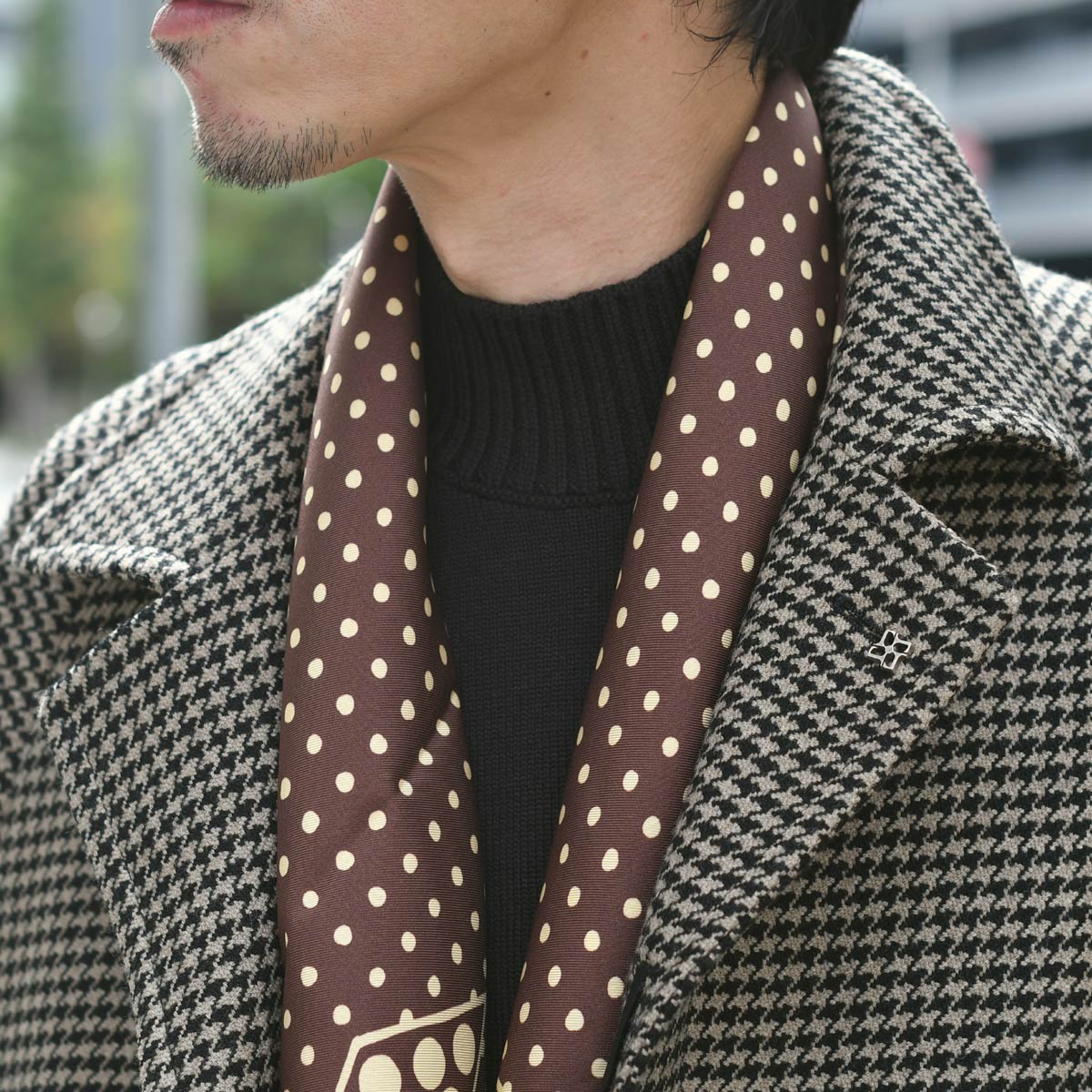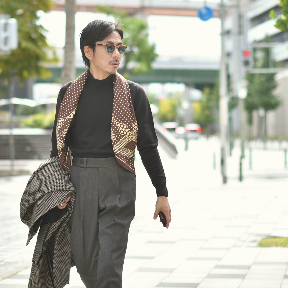インにはDrumohr【ドルモア】のモックネック、8ゲージでボリュームを。ディープセピアという色名もお洒落ですね。