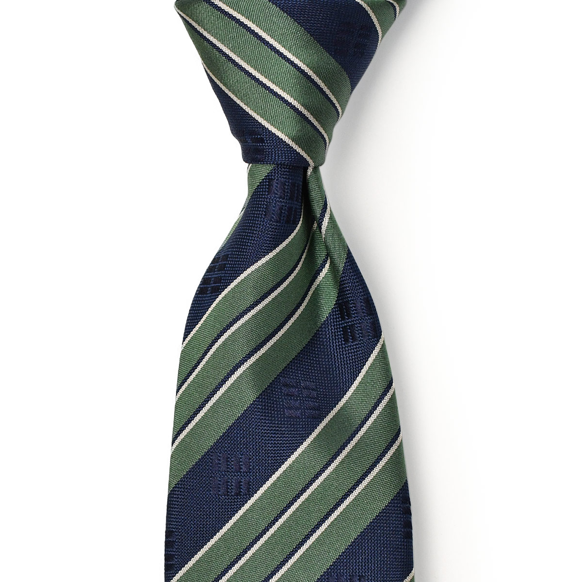 Atto Vannucci【アットヴァンヌッチ】ネクタイ 30200 セッテピエゲ シルク ストライプ ネイビー×グリーン