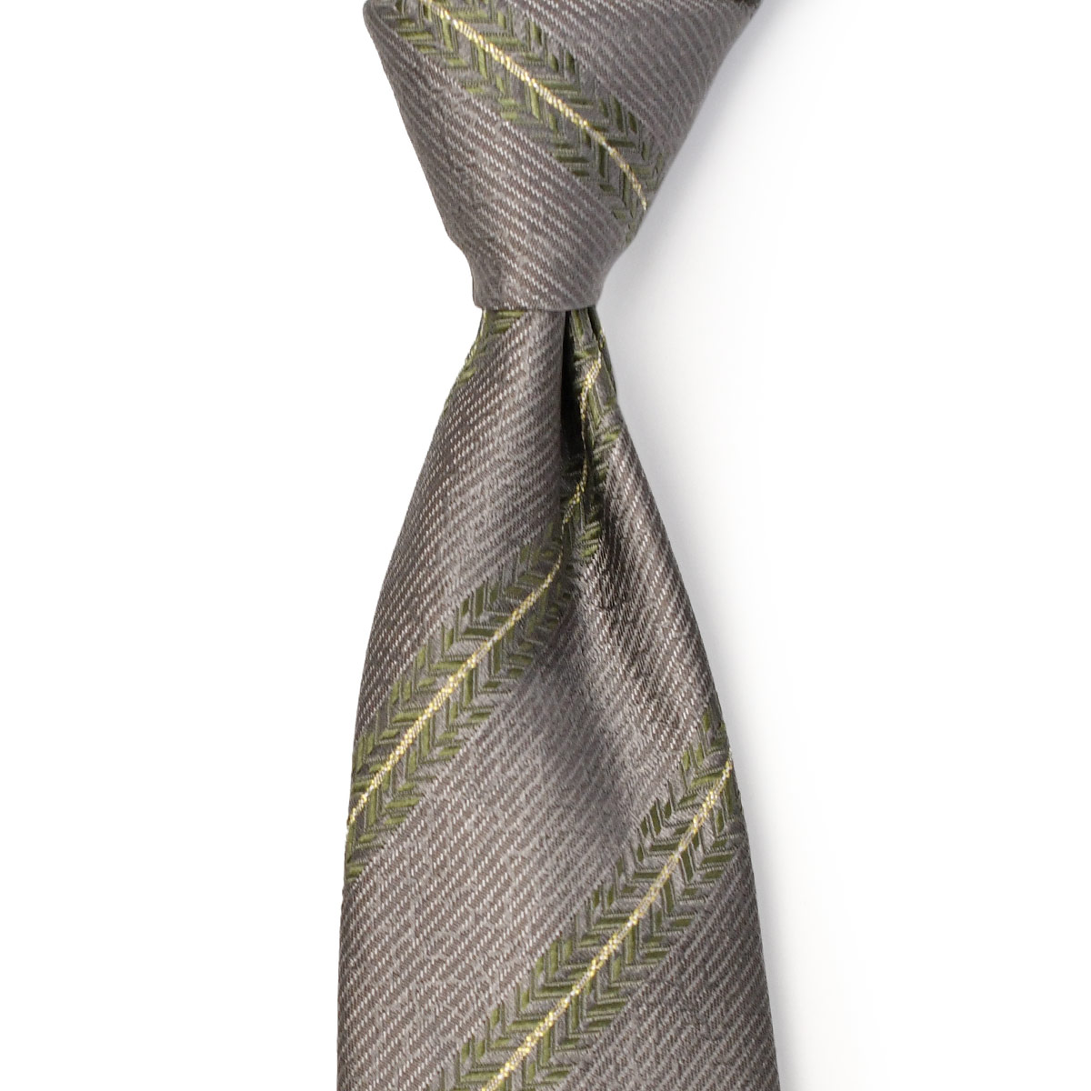 Atto Vannucci【アットヴァンヌッチ】ネクタイ 30207 セッテピエゲ シルク ストライプ グレー×グリーン