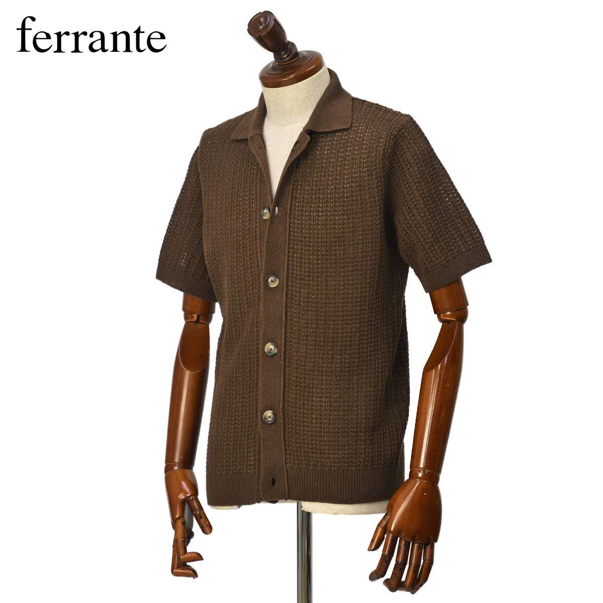 FERRANTE 【フェランテ】襟付きカーディガン 55R21603 048 7G リネン コットン ブラウン