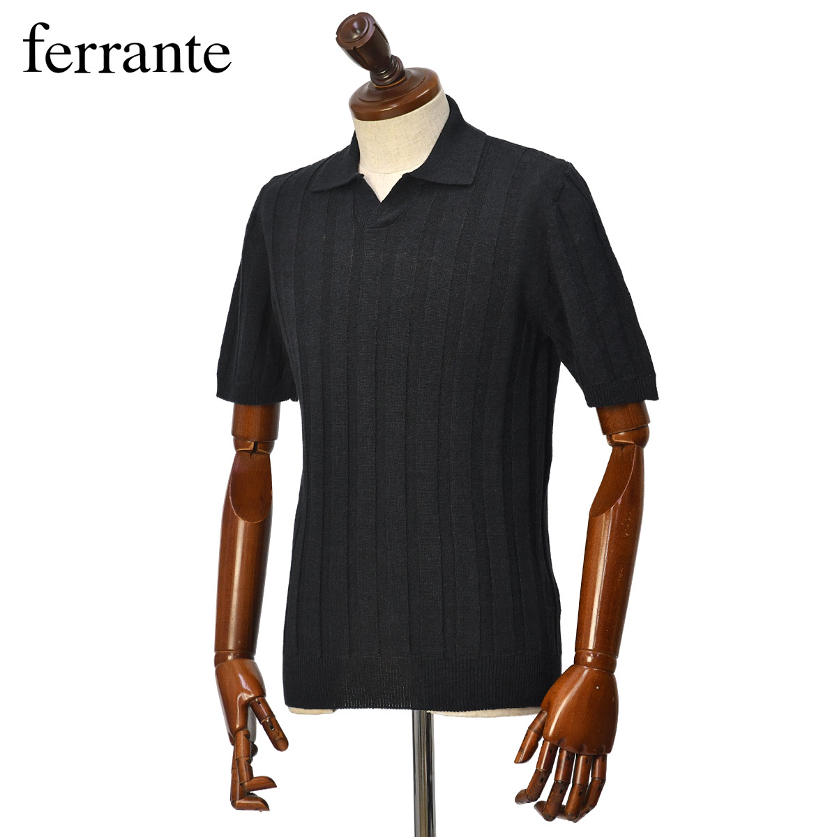 FERRANTE 【フェランテ】ハリヌキスキッパーポロ 55R21609 002 7G リネン コットン ブラック