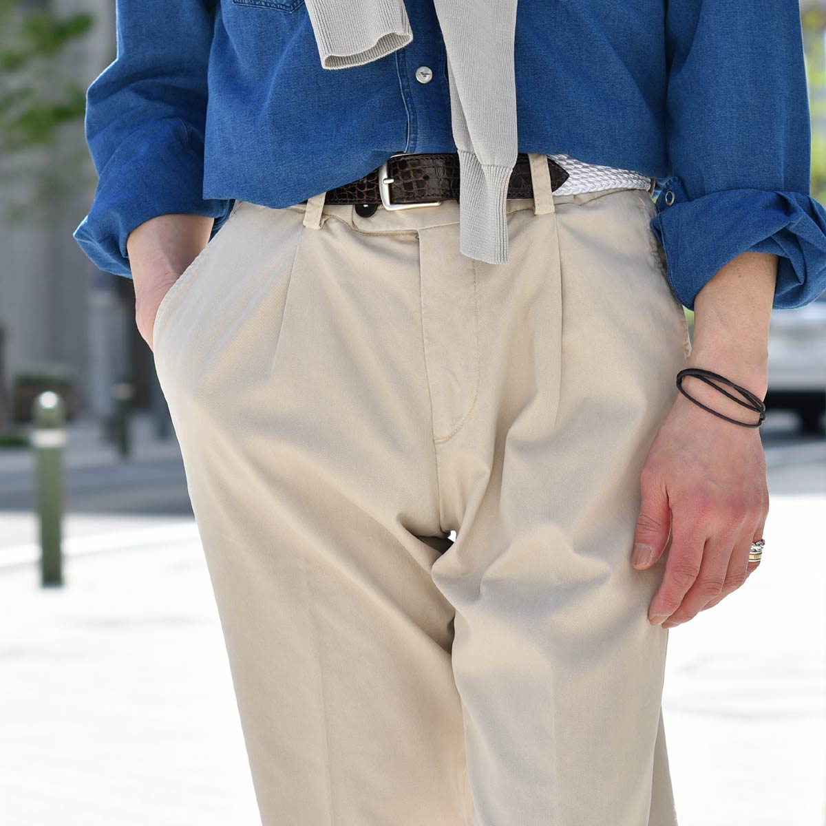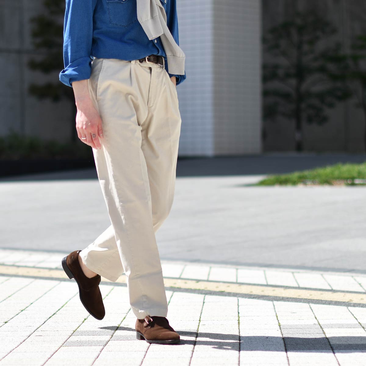 新登場のちょいユルなワンプリーツイージーパンツ。