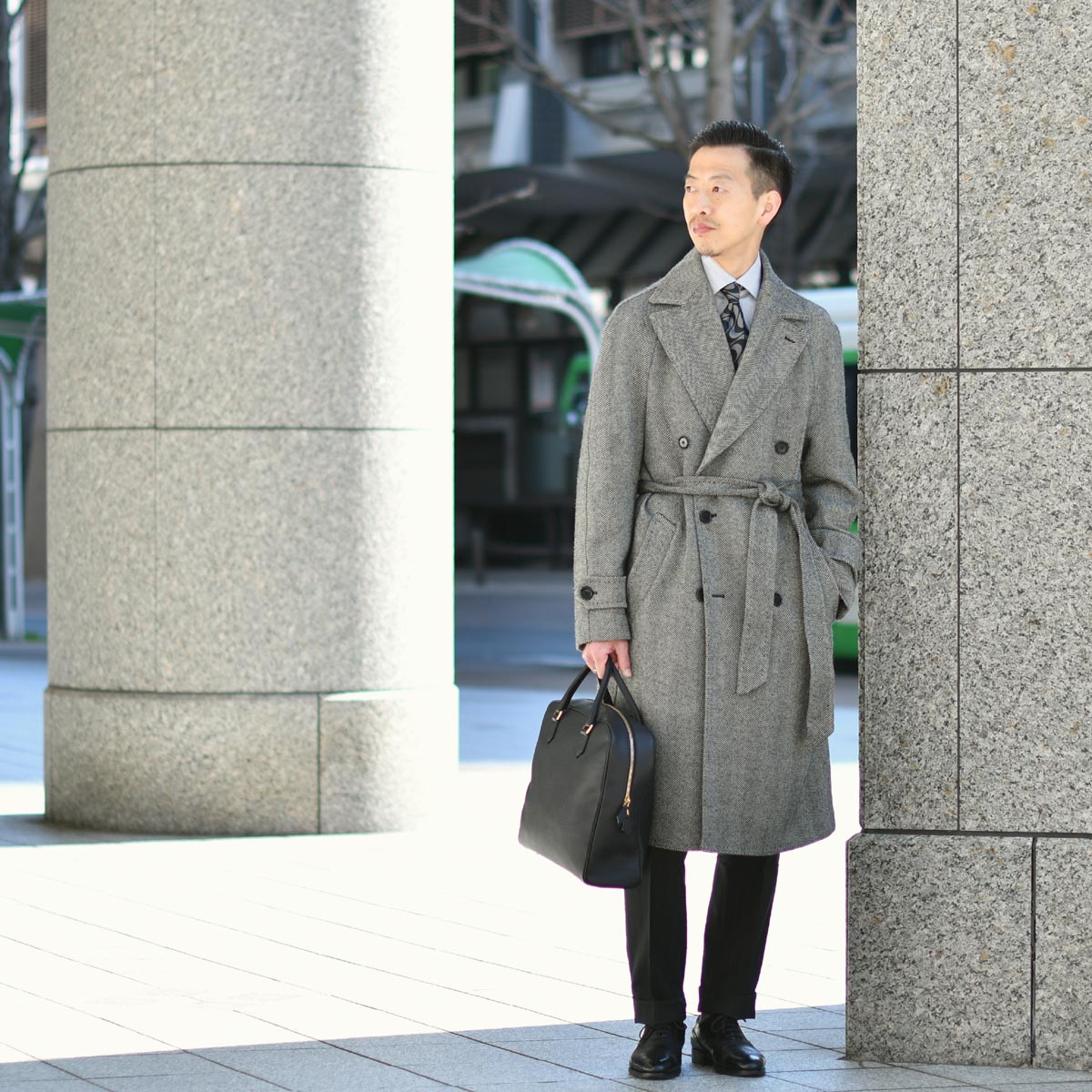 本日はTITO ALLEGRETTO【ティト アレグレット】ダブルベルテッドコートを用いたコーディネートのご紹介です。