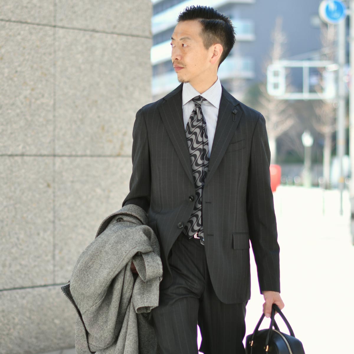 控えめなストライプがデキるビジネスマンを演出。