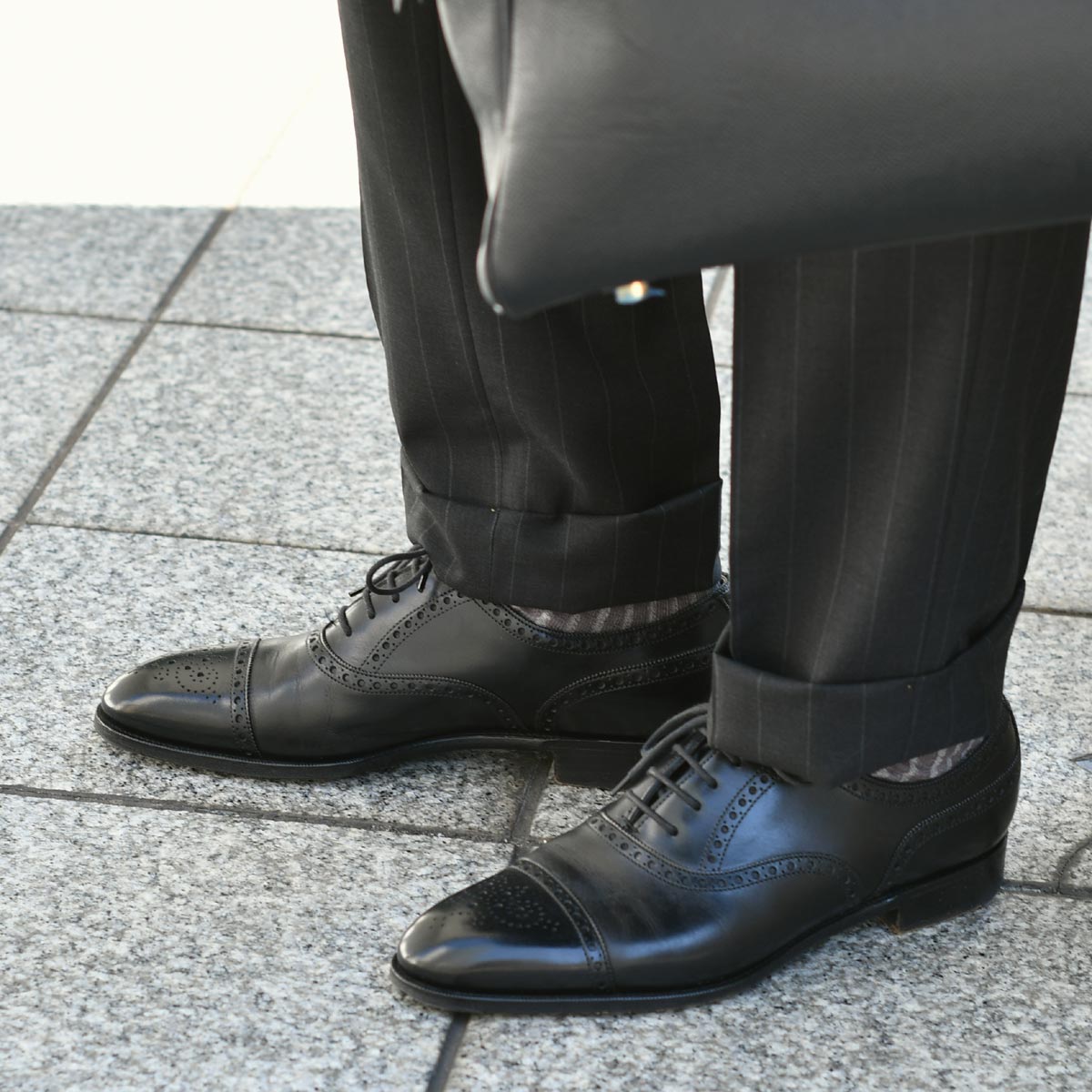 シューズ、バッグも当然ながらブラック。