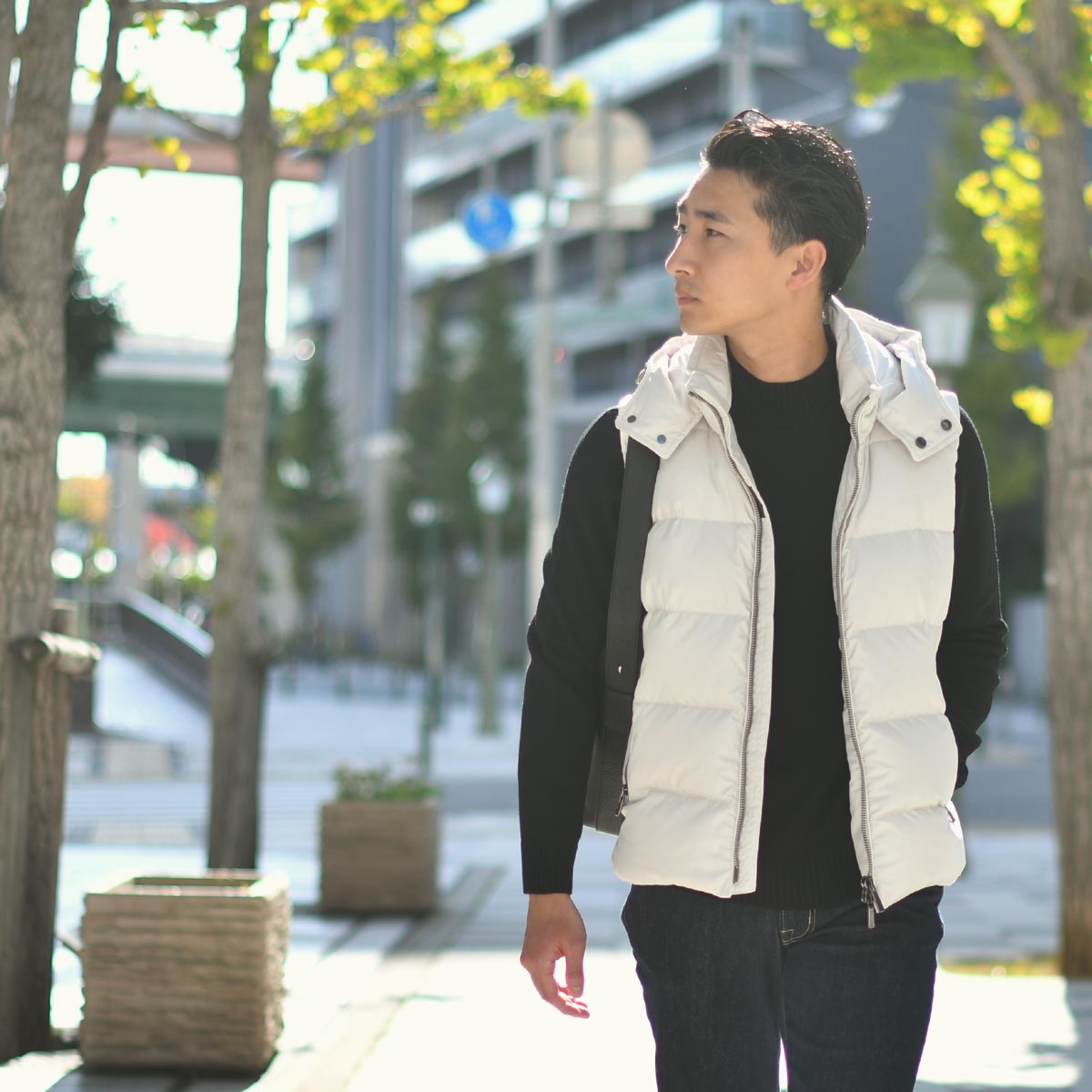 ブルゾン MooRER【ムーレー】フード付ダウンベスト FIRE WK AVORIO 着用size48