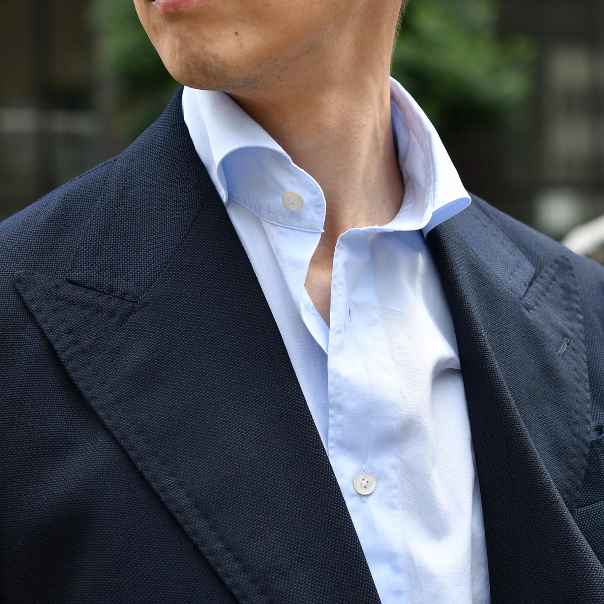 そんなジャケットにはナポリのシャツが良く合います。