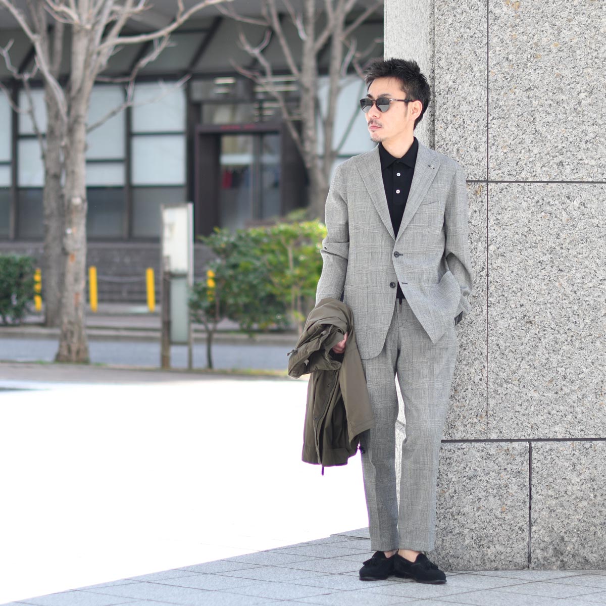 セットアップスーツに使用すると軽やかさがあいまってクリーンな印象に。
