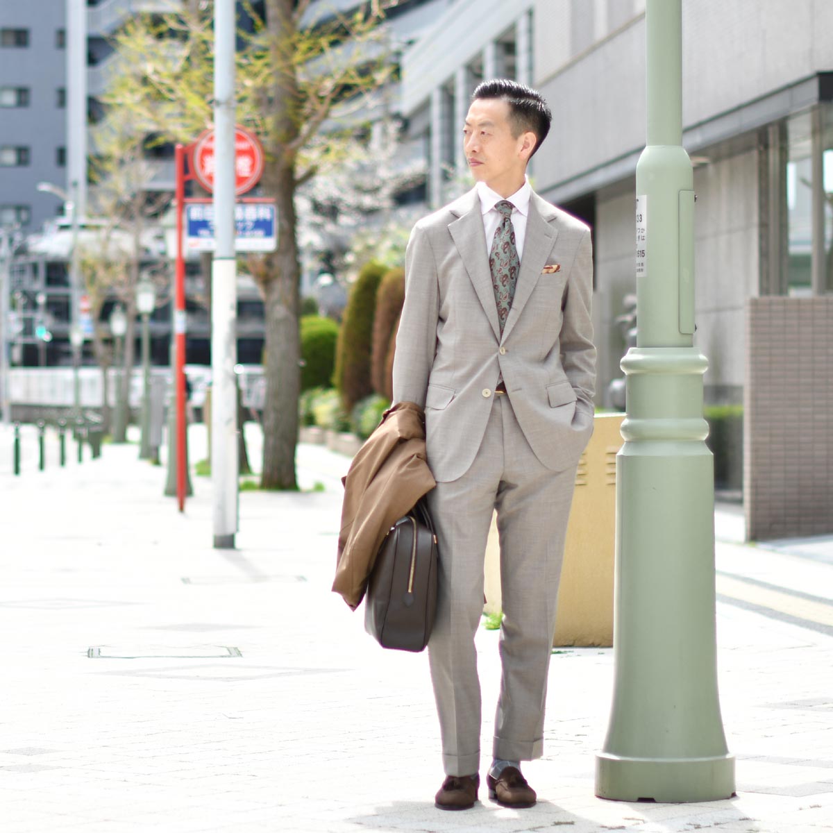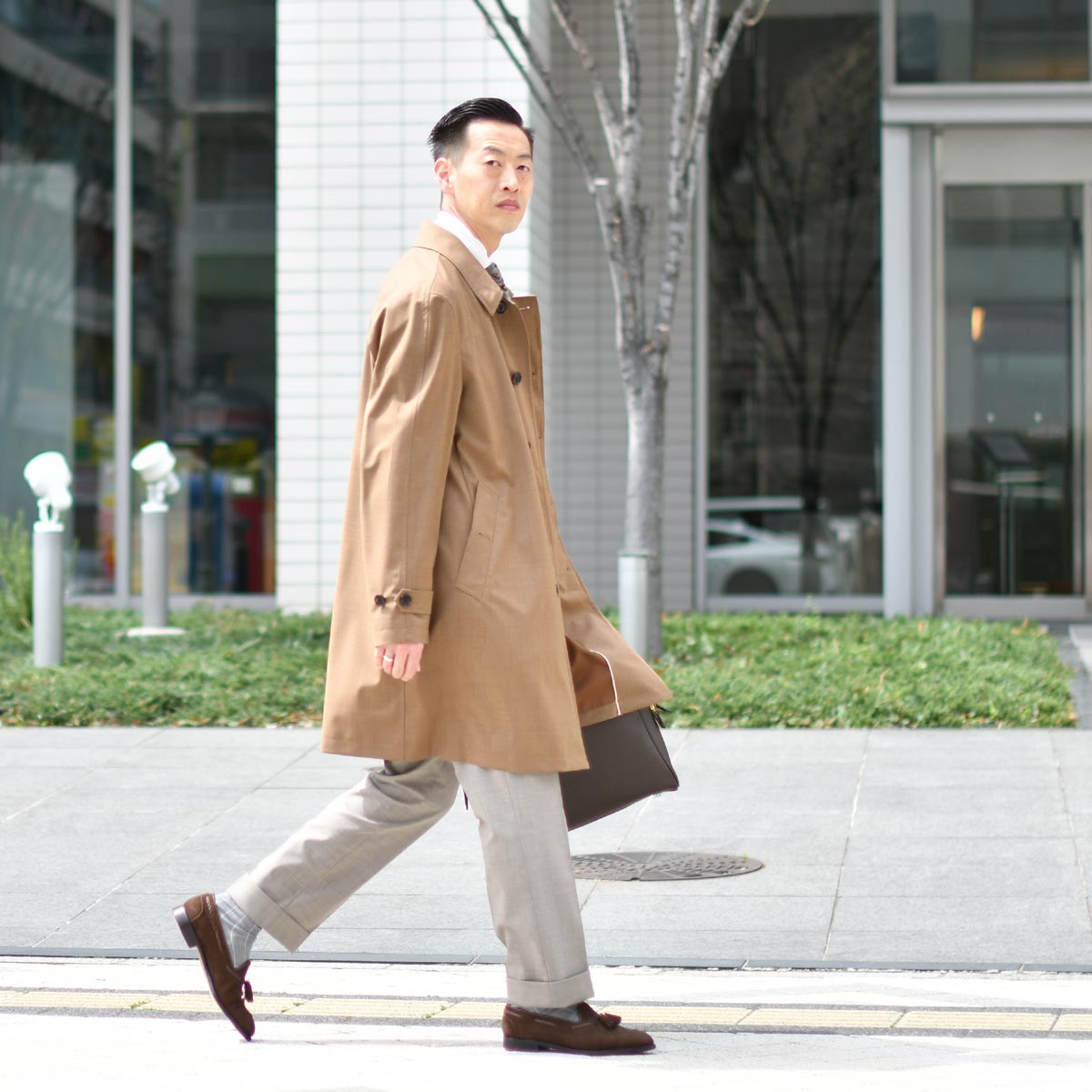 コットン×ウールの明るい茶色がお洒落強者感満載。