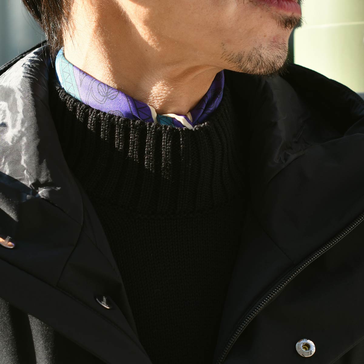 しっかりした糸で編まれた、グッと目の詰まったモックネック。