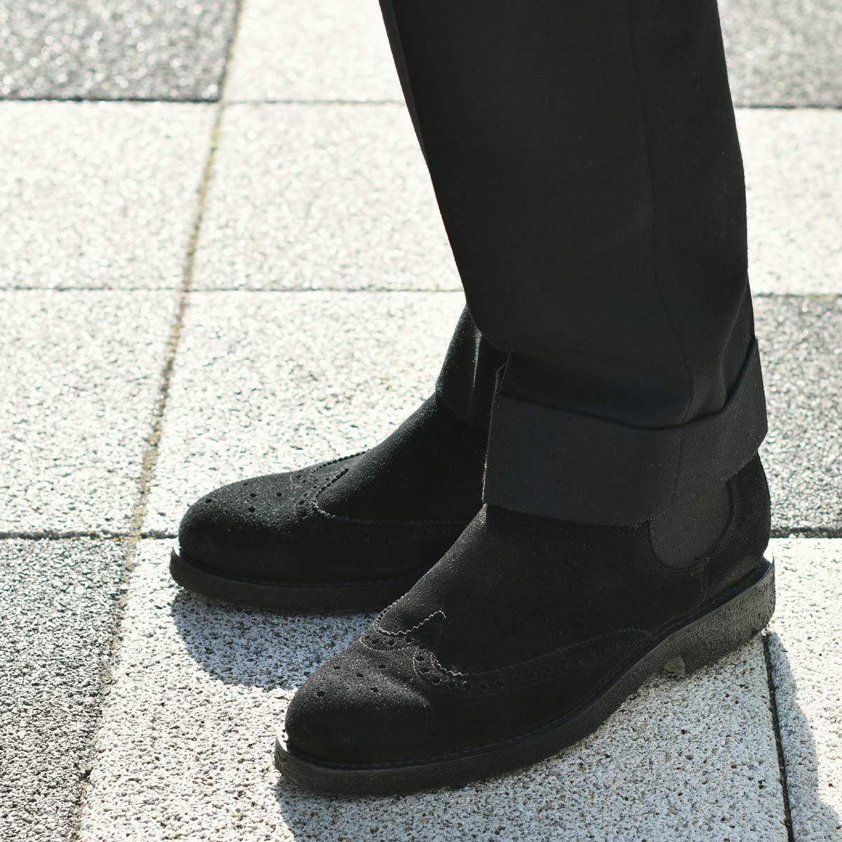 スエードウィングチップのサイドゴアブーツで仕上げました。