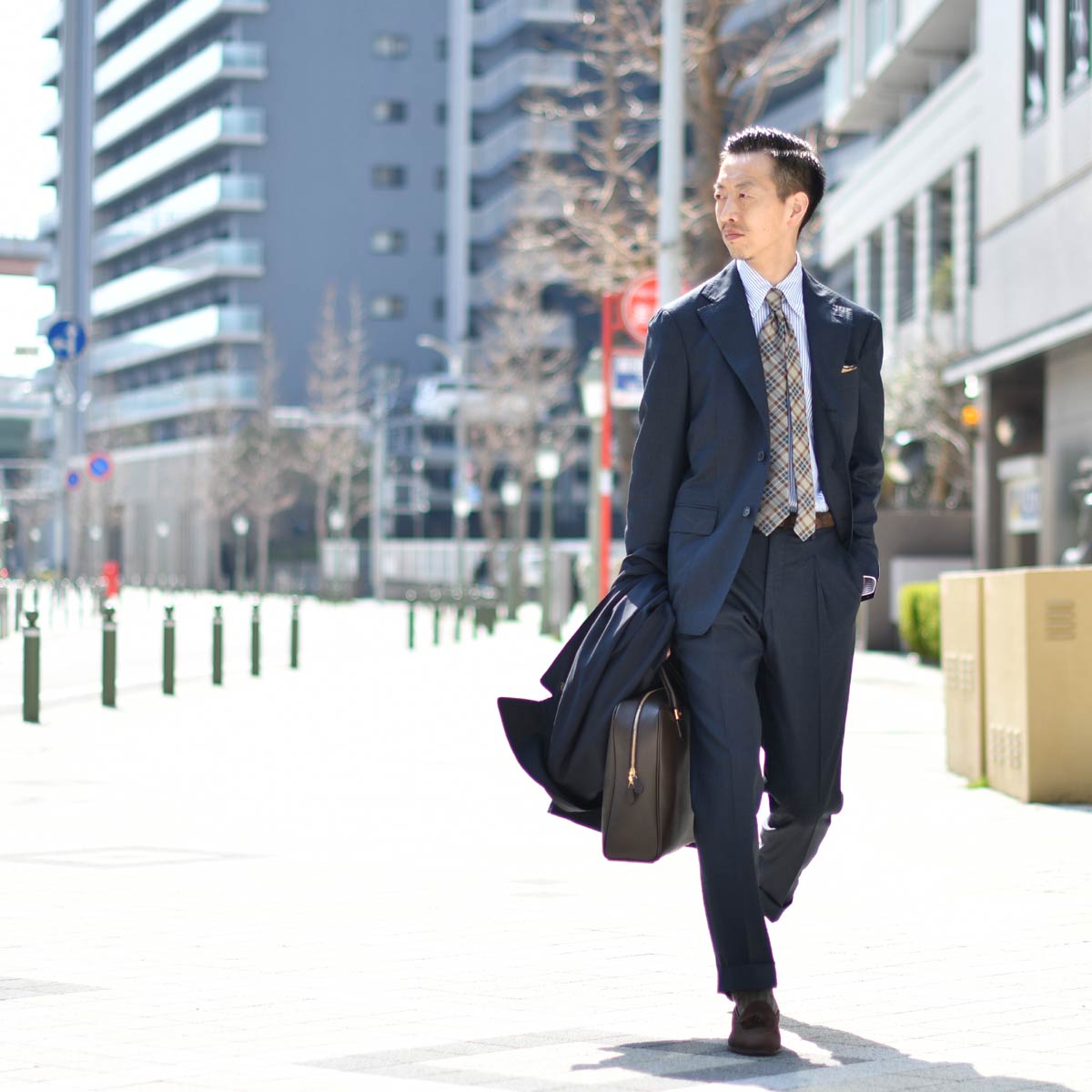 ネイビースーツを使ってトーン・トーンでまとめます。