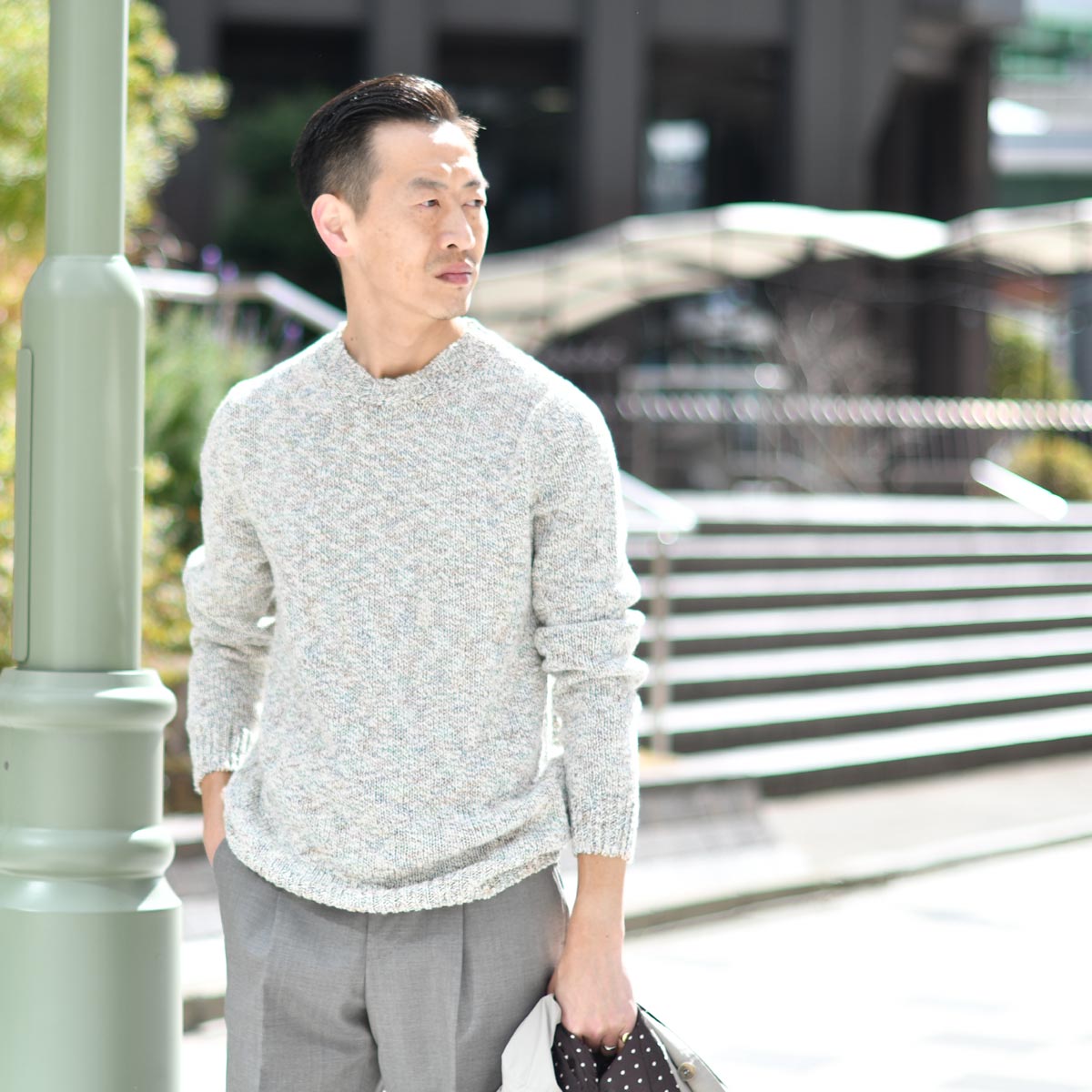 ニット FEDELI【フェデーリ】ローゲージクルーネックニット 着用size46