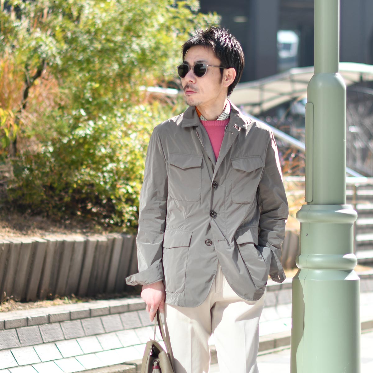 ファスナーで開閉できるチェンジポケットのみの装飾でその他の余計なものを省き、鉄板カラーのネイビーですから、オンスタイルはもちろん、カジュアルスタイルに取り入れた際もコーディネートを格上げしてくれます。